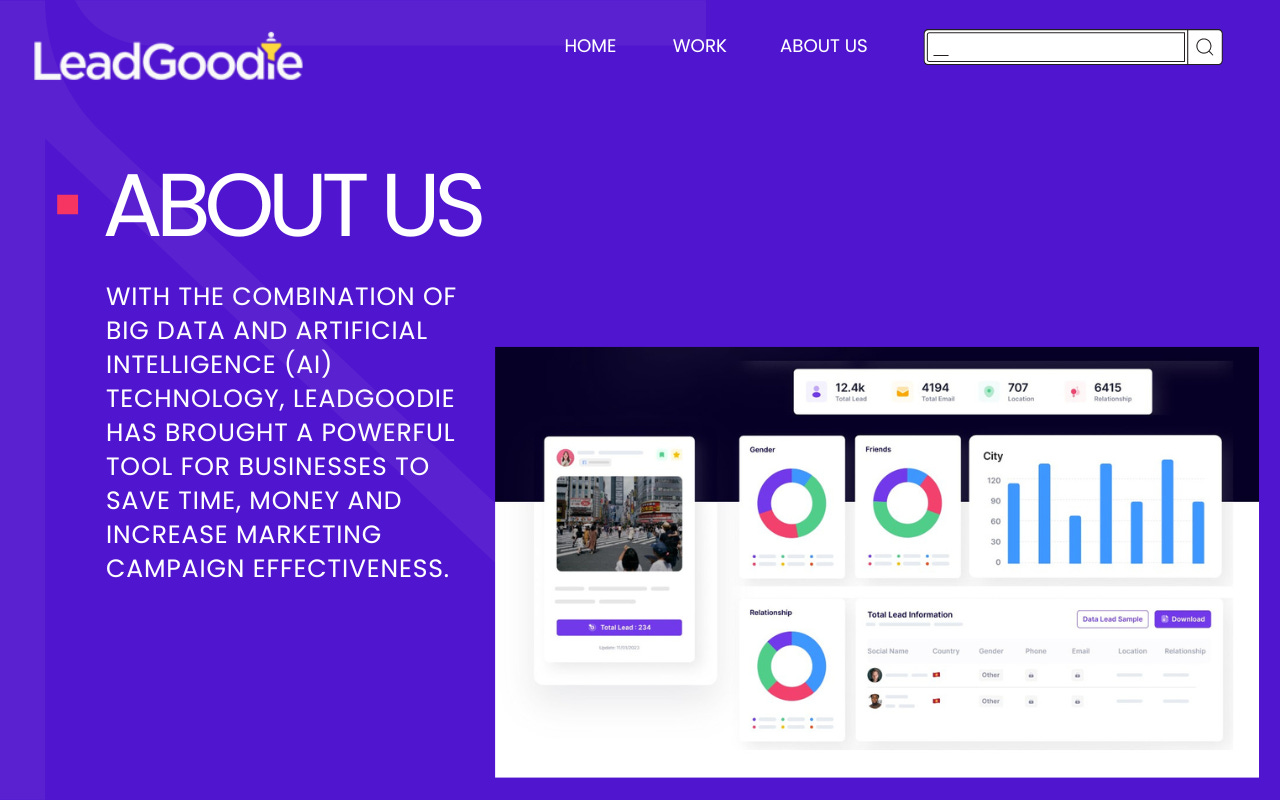 With the combination of Big Data and Artificial Intelligence (AI) technology, LeadGoodie has brought a powerful tool for businesses to save time, money and increase marketing campaign effectiveness.